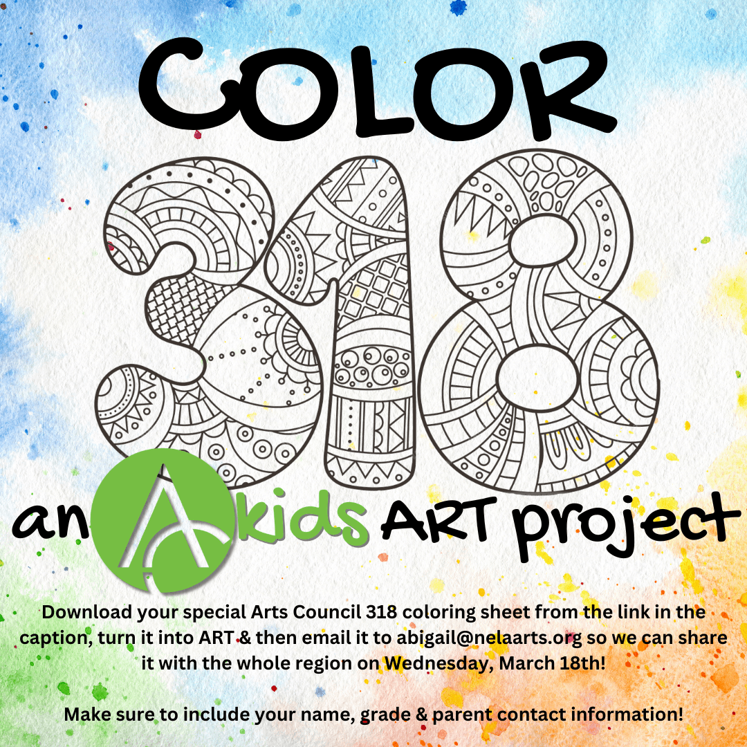 Celebrate 318 Day with a burst of creativity! The Northeast Louisiana Arts Council invites students, families, and classrooms across our 12-parish region to take part in Color 318, a fun, free, and no-pressure art activity for kids of all ages.