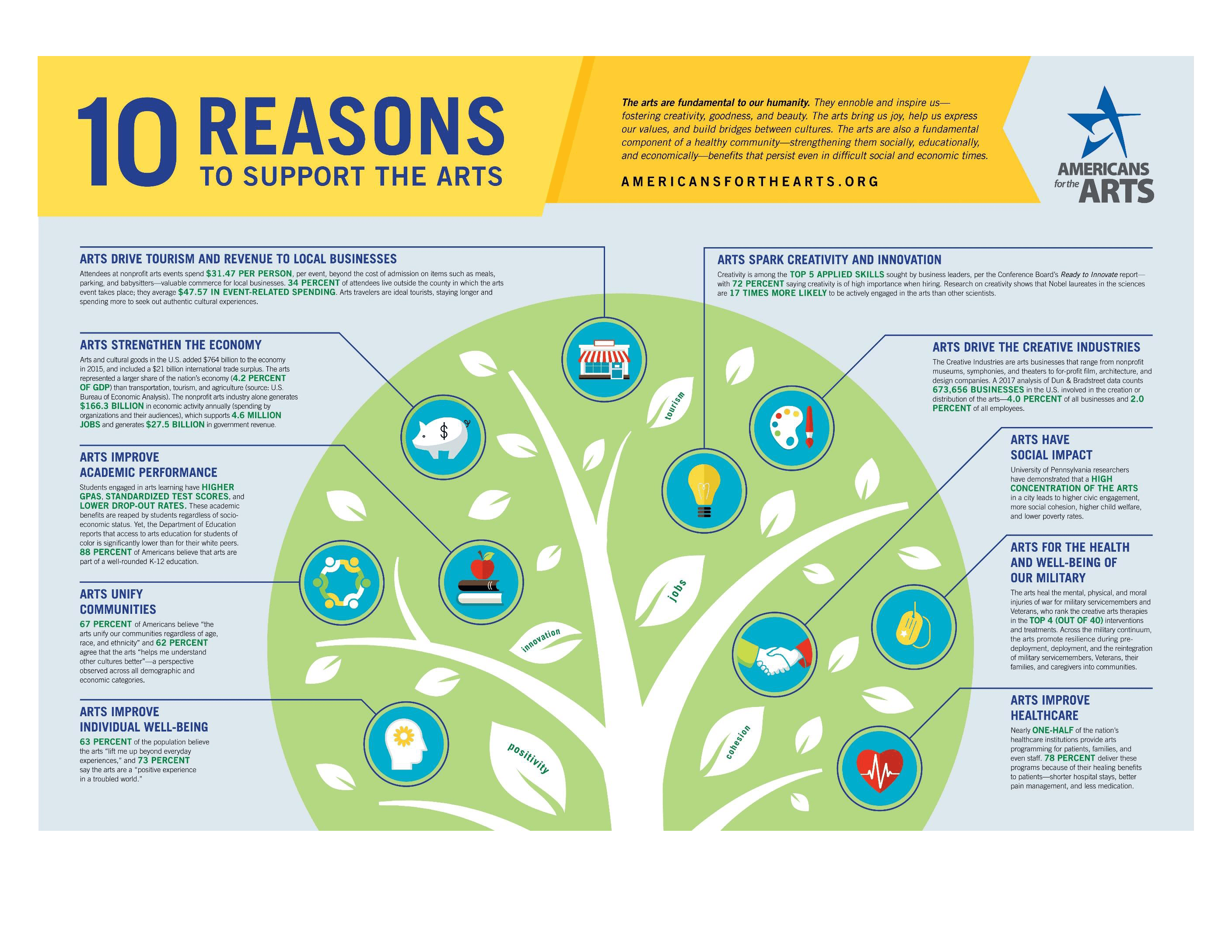 - Share the Impact: Provide local and state creative economy data to show how the arts create jobs and revenue.